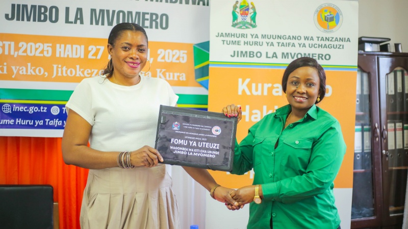 Msimamizi wa Uchaguzi wa Jimbo la Mvomero Bi. Mary Kayowa leo Agosti 26, 2025 amekabidhi fomu za uteuzi kwa mgombea Ubunge kupitia chama cha Mapinduzi - CCM Bi. Sarah Msafiri Ally. Zoezi hilo limefanyika katika ofisi ya msimamizi wa Uchaguzi wa Jimbo la Mvomero.